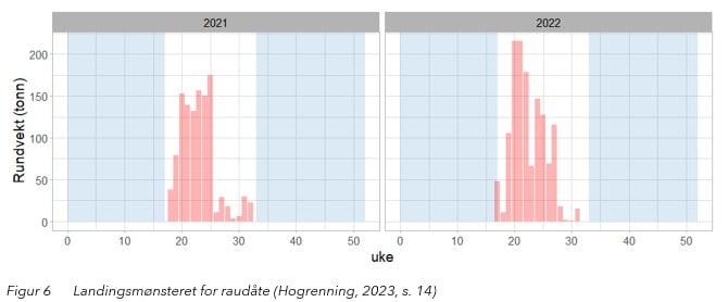 - Hogrenning, E. (2023). En studie av det norske fisket etter raudåte. Kan aktivitetsnivået i fisket påvirkes av forhold i andre fiskeri? Rapport 14/2023, Nofima, Tromsø, juni.